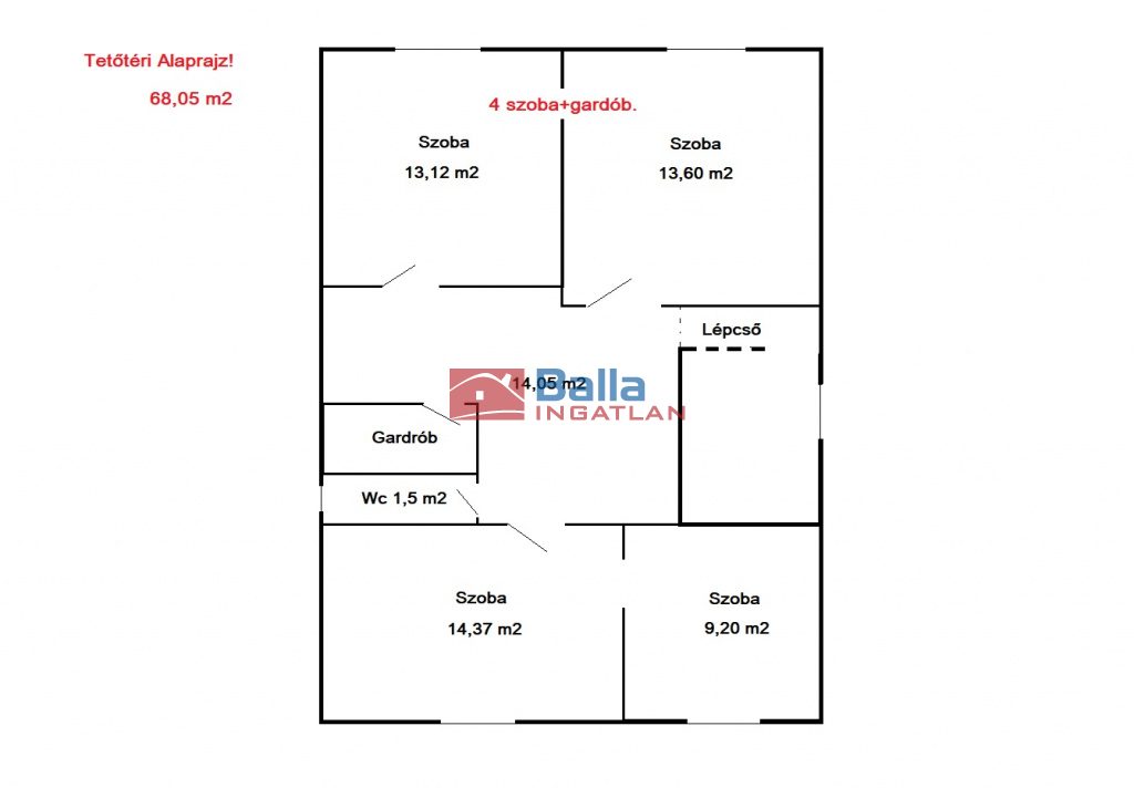 TETŐTÉR: 68,05 m2. 4 szoba+gardrób.