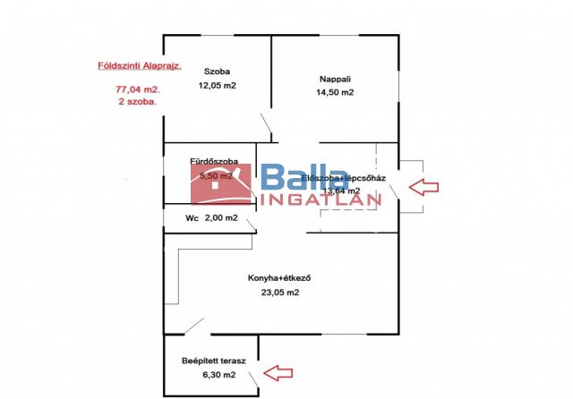 FÖLDSZINT: 77,04 m2. 2 szoba+beépített terasz,