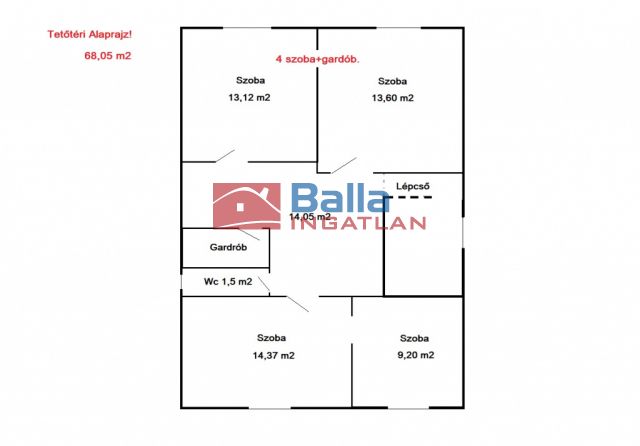 TETŐTÉR: 68,05 m2. 4 szoba+gardrób.