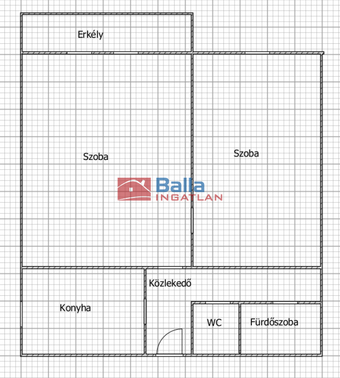 A lakás beosztása: közlekedő, konyha, 2 szoba, fürdőszoba, WC, erkély.