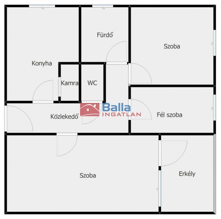 A lakás beosztása: közlekedő, konyha, kamra, 2 szoba, 1 félszoba, fürdőszoba, WC, erkély.