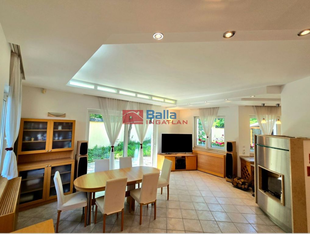 Egyéb tulajdonságok: azonnal költözhető, lift, kandalló, külön étkező, külön wc, gardróbszoba, kamra, erkély (4 m²), terasz (19 m²), pince, garázs