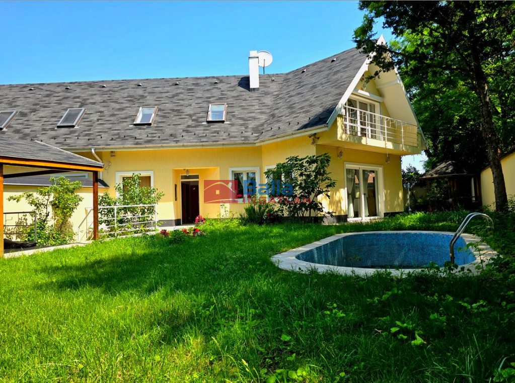 Extrák: REHAU nyílászárók, a nappaliban 3- m-es toló teraszajtó,<br /> Hálóban elektromos redőny, <br /> Riasztó<br /> A kertben mozgásérzékelő lámpák<br /> Minőségi biliárdasztal<br /> szauna(infra és finn)<br /> Háromféle fűtési lehetőség<br /> medence<br /> A hálóban egyedi tervezésű fényerőszabályzós, csillagfényes LED lámpásleugrás imitálja az éjszakai égboltot.