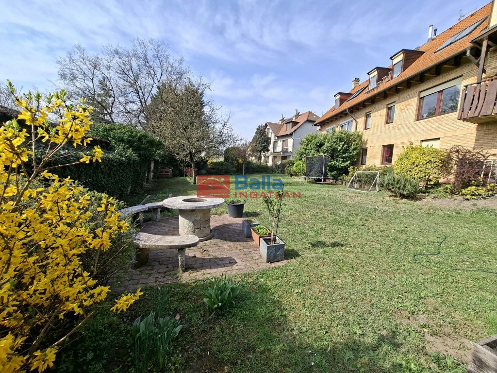 A lakáshoz tartozik egy önálló garázs és egy külön tároló, a garázs elektromos autó töltésére is alkalmas. A házhoz gondozott, közös használatú kert is kapcsolódik, amely pihenésre vagy kisebb kerti programokra is ideális.