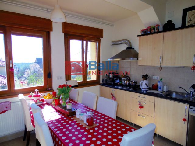 1. emeleten 1 tágas nappali, 1 szintén tágas étkezős, napfényes konyha, ahol egy kamra is, a nappaliból kilépve egy nagyon hangulatos téli kertbe jutunk, valamint még egy hálószoba, ahonnan egy ajtó nyílik az erkélyre. A lépcsőházból kilépve ezen a szinten van még egy hatalmas terasz, amelyről hátra lehet menni a kertbe.