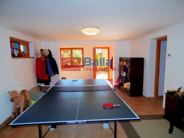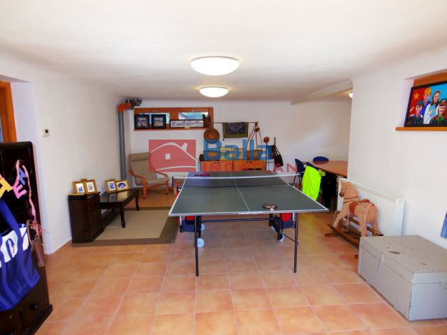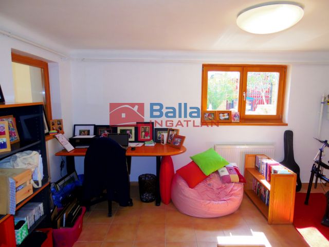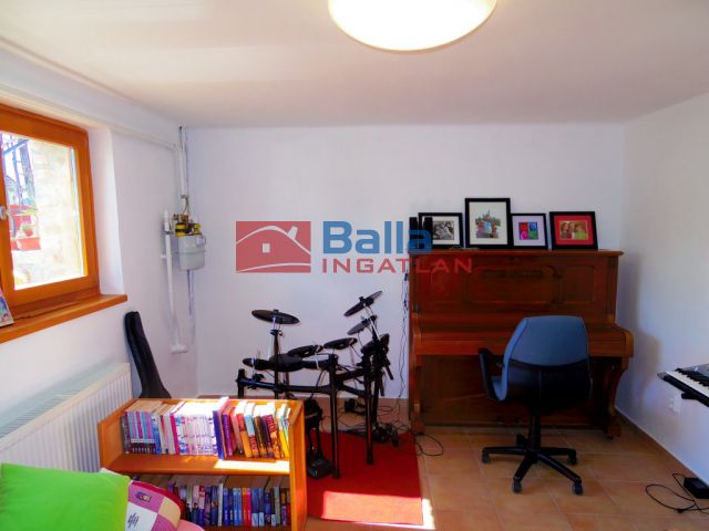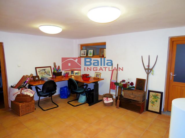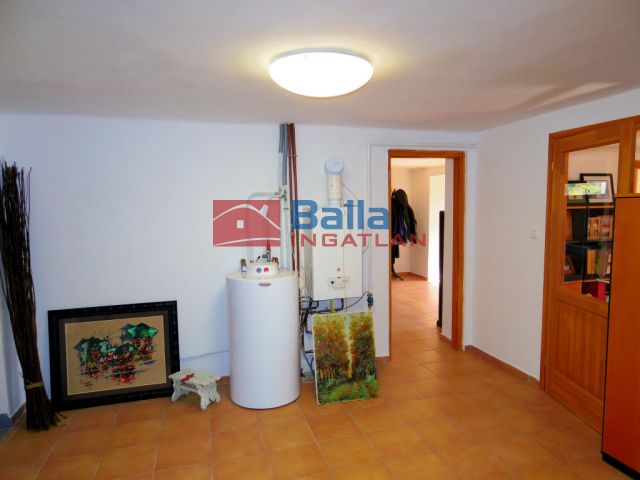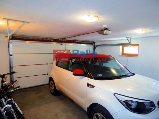 A földszinten 2 szoba található, egy hall, egy konditerem és egy mosókonyha WC-vel, valamint a dupla garázs. Pince tároló helyiség is tartozik az ingatlanhoz, mely 7-8 nm körül van.