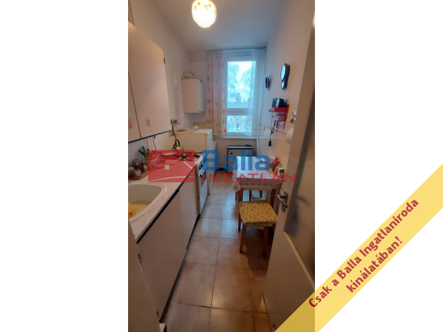 A lakásba lépve jobbra az ablakos konyha, majd a kisebb szoba helyezkedik el. A bejárattal szemben található a nappali , melyhez kapcsolódik a kb . 5nm erkély .