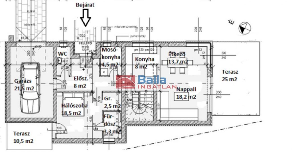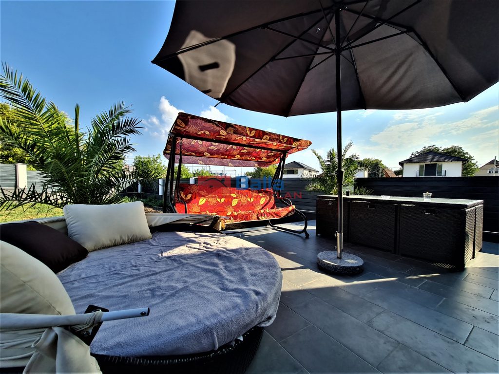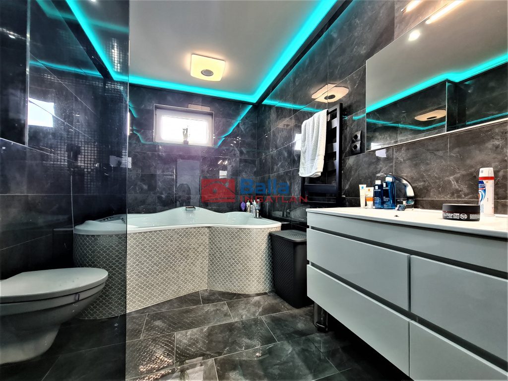 Egyéb tulajdonságok: tehermentes, azonnal költözhető, külön wc, gardróbszoba, kamra, terasz (80 m²), garázs