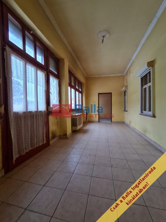 A délkeleti fekvésű, földszintes főépület 124 m²-es, nappali + két hálószobás, étkezős, nagy konyhás, beépített verandás, kamrás és tágas fürdőszobás elrendezésével ideális családi otthon. A 290 cm-es belmagasság levegőssé és elegánssá teszi a tereket. A ház 30 cm-es lábazattal rendelkezik, amely stabilitást és esztétikai keretet biztosít az épületnek. A fűtés gázkazánnal és radiátorokkal megoldott, néhány helyiségben a régi gázkonvektorok is megmaradtak. Az épület műszakilag korszerűsítendő és felújítandó, falazata vegyes - tégla és vályog -, ami lehetőséget ad egyedi építészeti megoldásokra.