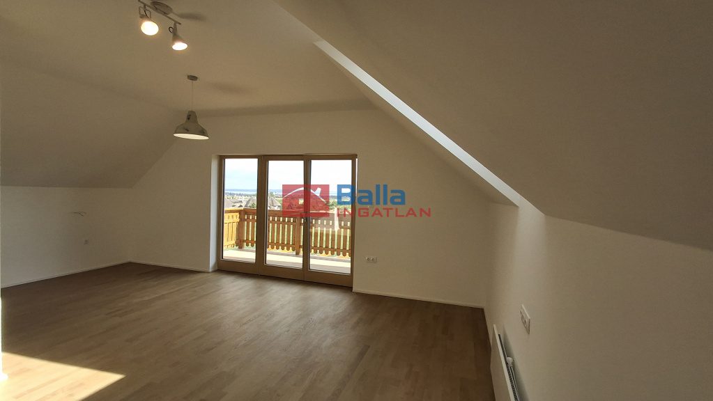 EMELETÉN (69.3 m2) 3 szoba, kádas fürdőszoba szaunával, előtér,8.38 m2 erkély balatoni panorámával, akárcsak a földszintről.