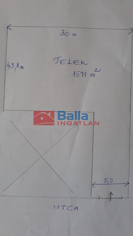 Egyéb: Nyeles telek, az utcáról 6 m széles bejáró. 1314 m2 téglalap alakú telek és a telek bejáró (nyél) 257 m2.