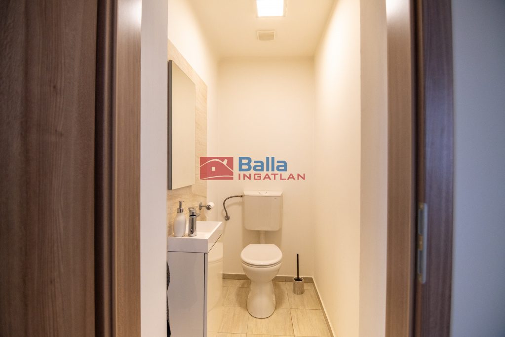 A bal oldalon található a konyha, étkező, kamra, fürdőszoba és külön vendég-WC,