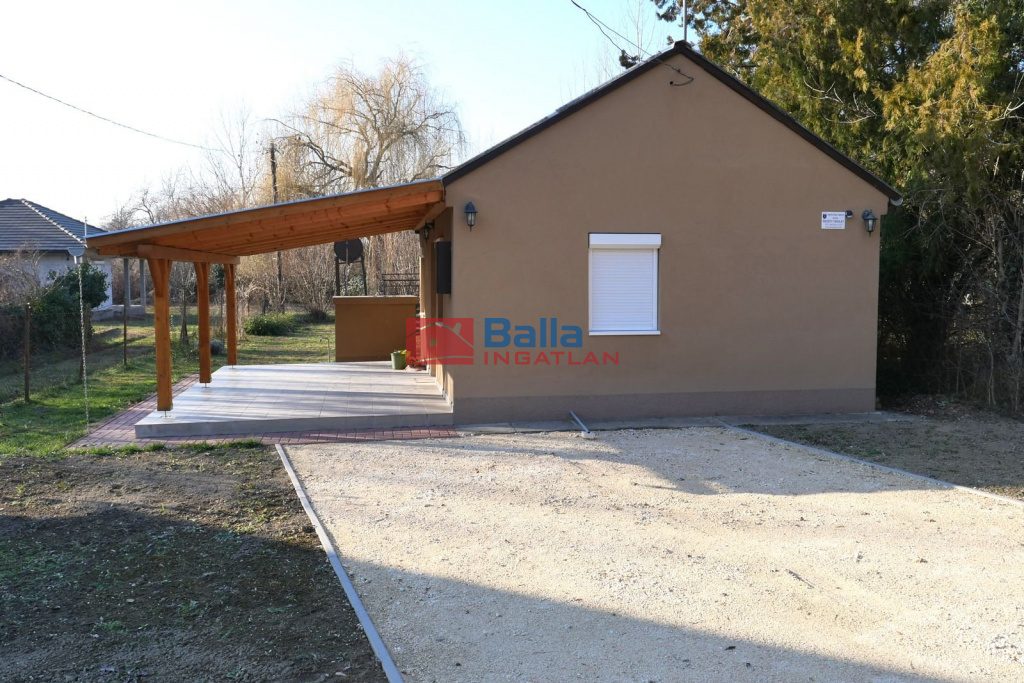 Szeretnél egy saját kis menedéket, ahol igazán kikapcsolódhat? Ez a 28+15 nm-es,fedett teraszos könnyűszerkezetes, hűtő-fűtő klímás nyaraló tökéletes választás! Frissen felújítva, nyugodt környezetben várja új tulajdonosát. 540nm-s rendezett kertben, két hálószoba, amerikai konyhás étkező, Igényes konyhabútor, hatalmas fedett terasz, hogy élvezze a friss levegőt. Akár télen-nyáron használhatod, mert szigetelve van. A fűtésről, hűtésről inverteres klíma gondoskodik. A kertben ízlésesen elkészített tároló. Hatalmas épített sütögető készült. Villany, hidroforos víz és emésztő szolgálja a napi szükségletek kielégítését. Szép fabetétes kerítés, elektromos bejárati kapu és a felügyeletre bekötött riasztó szolgálja a kényelmet és biztonságot