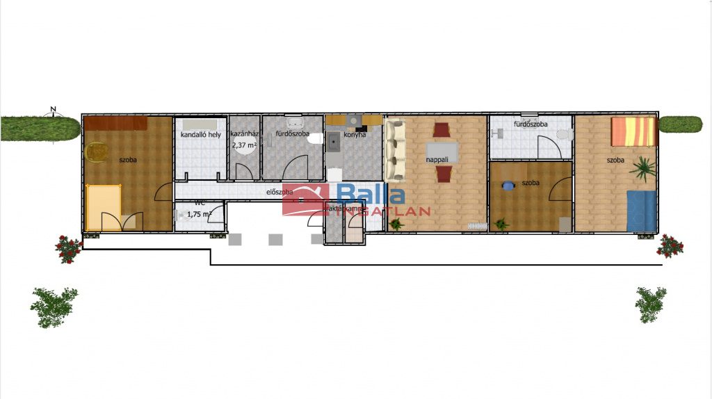 Egyéb tulajdonságok: tehermentes, azonnal költözhető, kandalló, külön wc, terasz (20 m²)