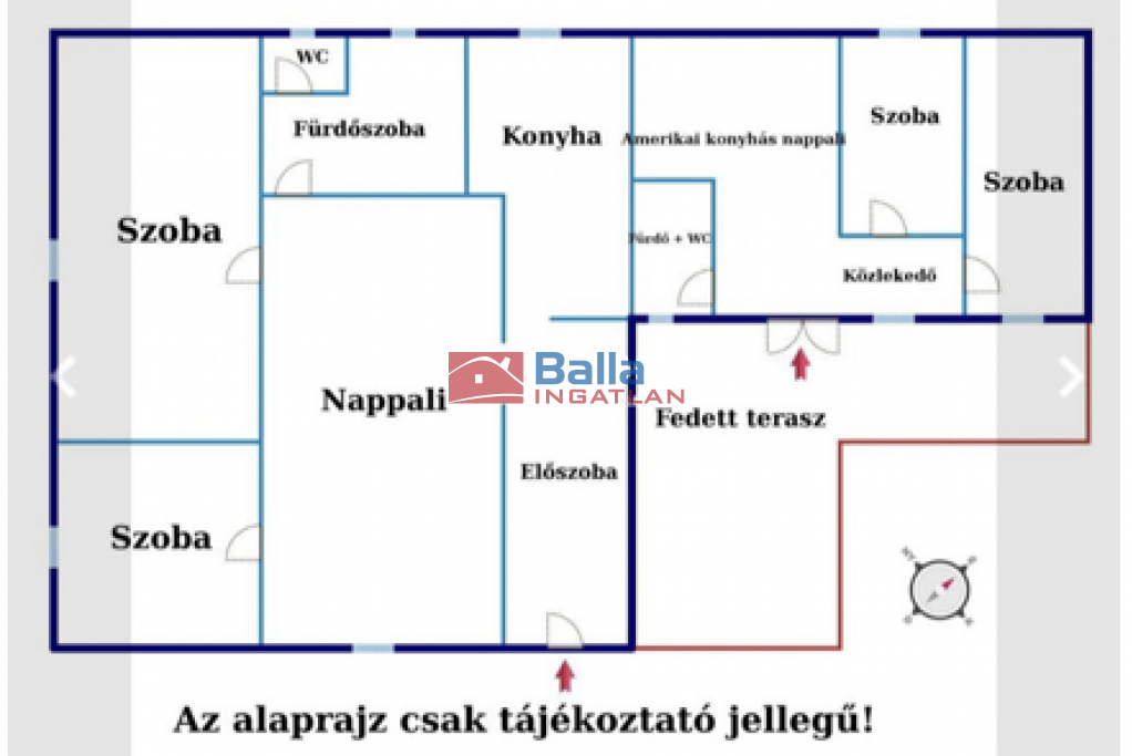 A lakrész 5 + 1 félszobás, két konyhás, két fürdőszobás kialakítású.