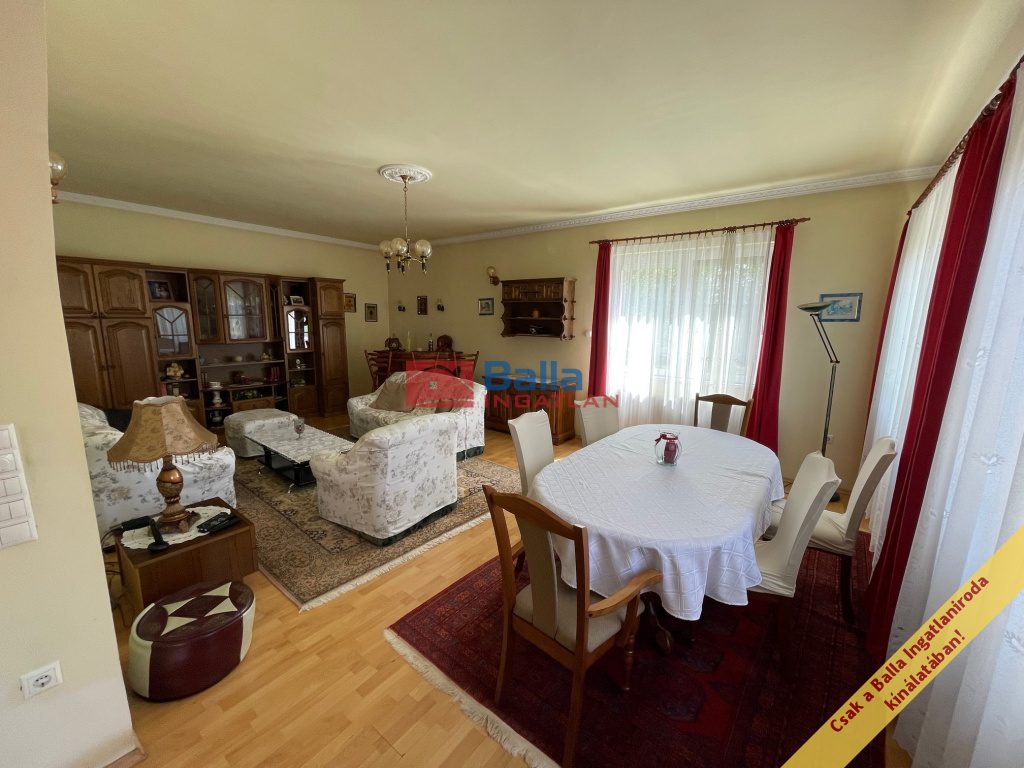 Egyéb tulajdonságok: tehermentes, azonnal költözhető, külön étkező, külön wc, gardróbszoba, kamra, erkély (7 m²), terasz (33 m²), pince, garázs, utcai parkolás