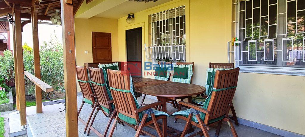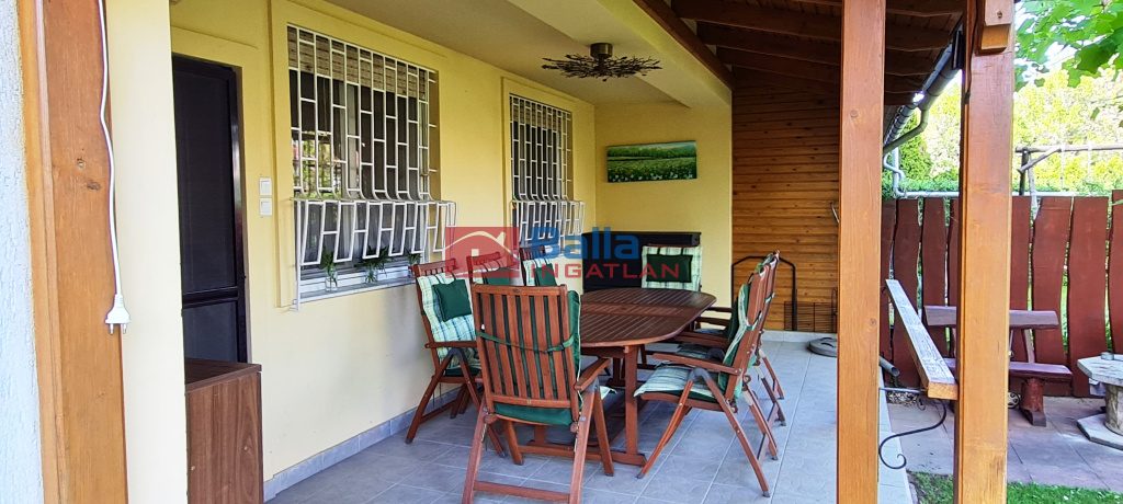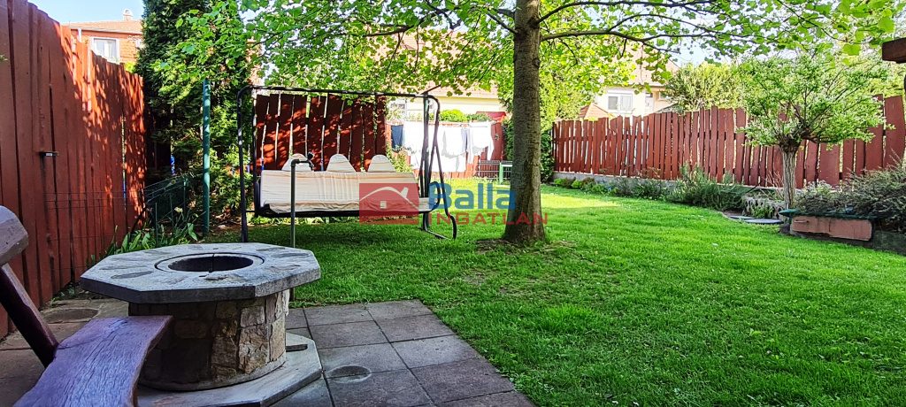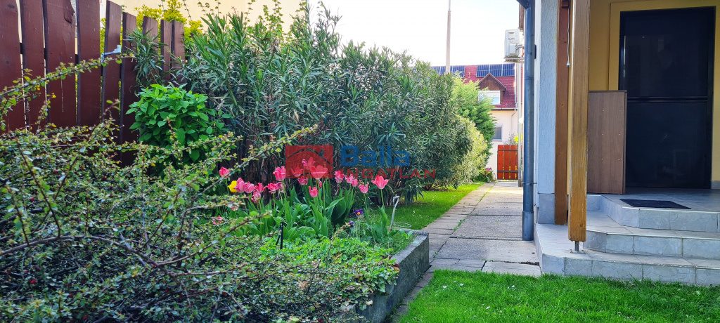 A hátsó 20 nm es teljesen fedett, igényes faszerkezettel elkészített terasz kiváló helyszíne a baráti összejöveteleknek, beszélgetéseknek, családi ebédeknek. A keleti tájolású, kertész által gondozott kertben a dísznövények ideális otthonra találtak, számos cserje, leander, díszfű, virág ékesíti a kertet, a központi helyen lévő nyáron kellemes árnyékot biztosító tulipánfa mellett. A hátsó részben pedig kis konyhakert is helyet kapott. A saját fúrt kútról az öntözés költséghatékonyan megoldható az automata öntözőrendszeren keresztül.