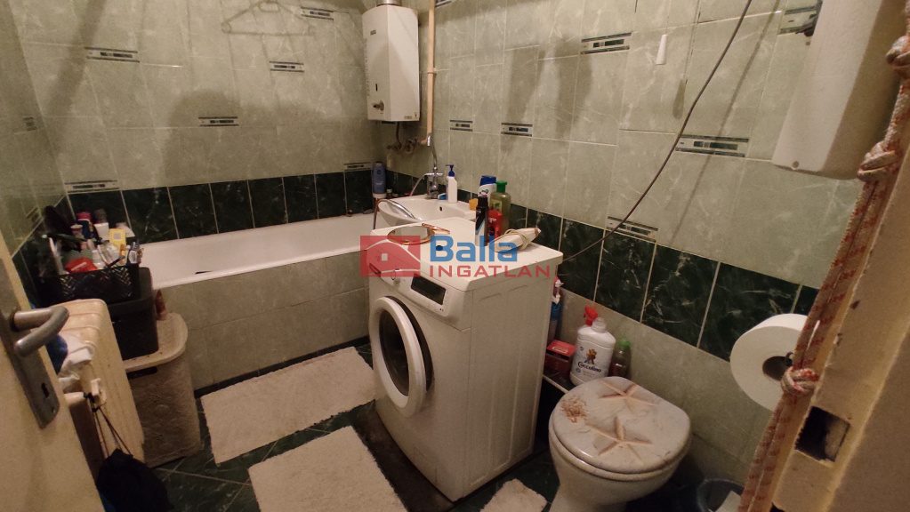 A fürdőszoba és a WC egy helységben.