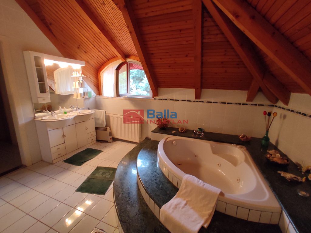 Egyéb tulajdonságok: tehermentes, lift, kandalló, külön wc, gardróbszoba, kamra, francia erkély, terasz (40 m²), szuterén (90 m²), garázs