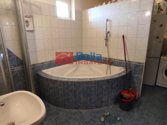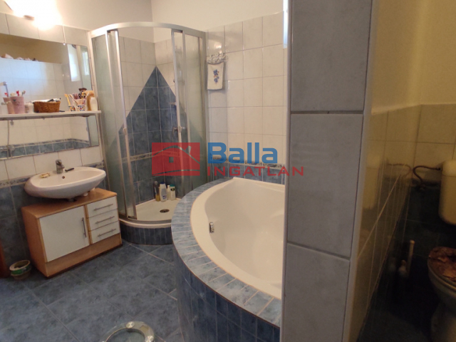 Fürdőszobában kialakítva sarokkád, zuhanyzó és WC is.