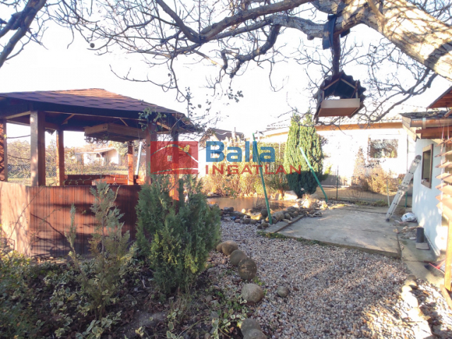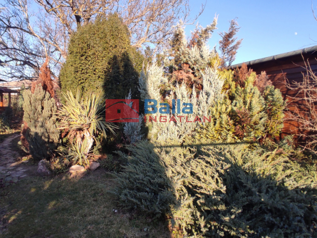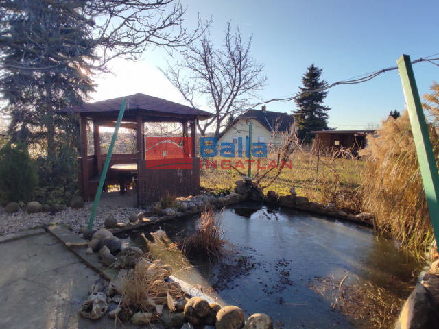 A ház mögötti kert teljesen elzárt intim terület a szomszédoktól, díszkerttel egy kis halastóval, tároló, fedett sütögető, egy fedett pavilonnal ami nyugodt pihenésre ad lehetőséget.