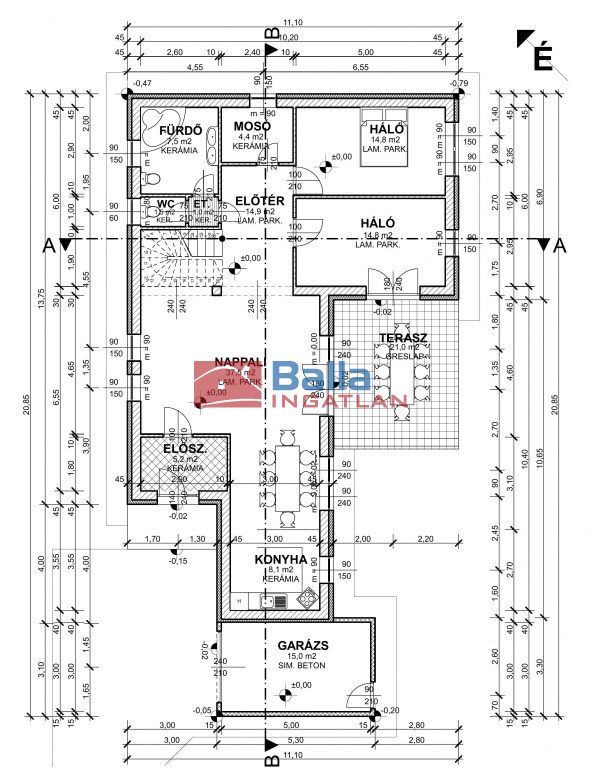 Egyéb tulajdonságok: külön étkező, terasz (100 m²), garázs