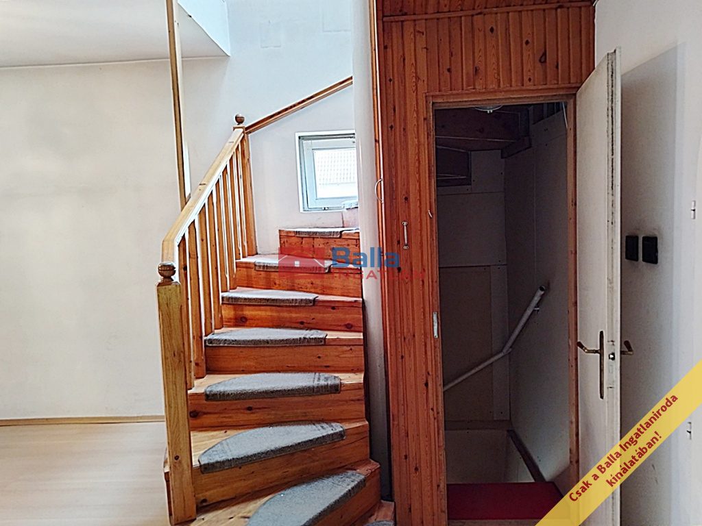 A pinceszint csigalépcsőn, a tetőtér falépcsőn közelíthető meg.