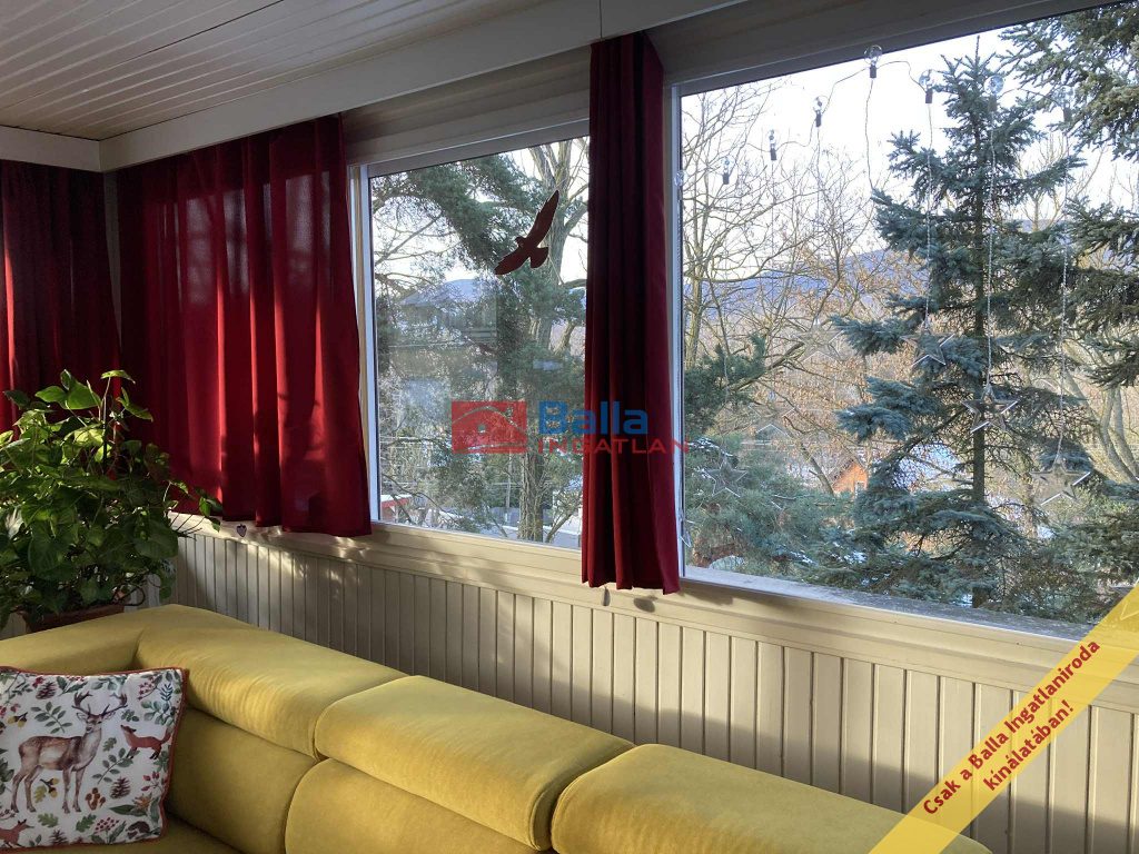 Rendkívül csendes, nyugodt és zöldövezeti környéken található, egy 1980-as évek elején épült, tégla és fa építésű, palatetős, két szintes, hangulatos, két generációssá alakítható családi ház. Homlokzatát körbe szigetelték 10 cm hungarocellel, a tető pedig 15 cm kőzetgyapotot kapott.
