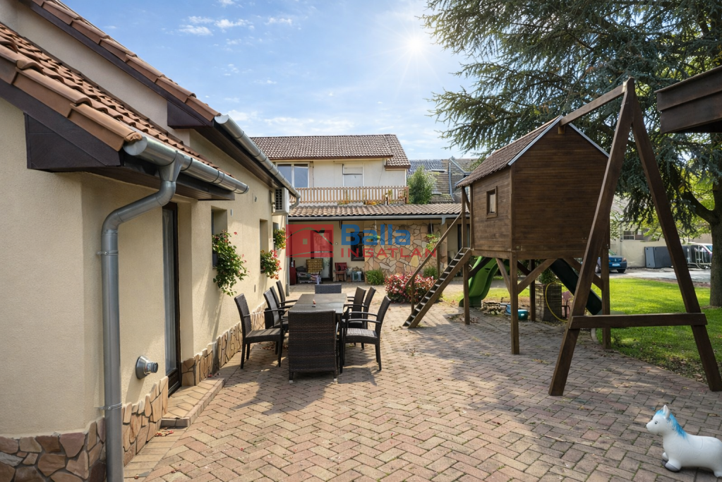 külön bejáratú lakóegységgel – 995 m²-es, parkosított telken helyezkedik el.