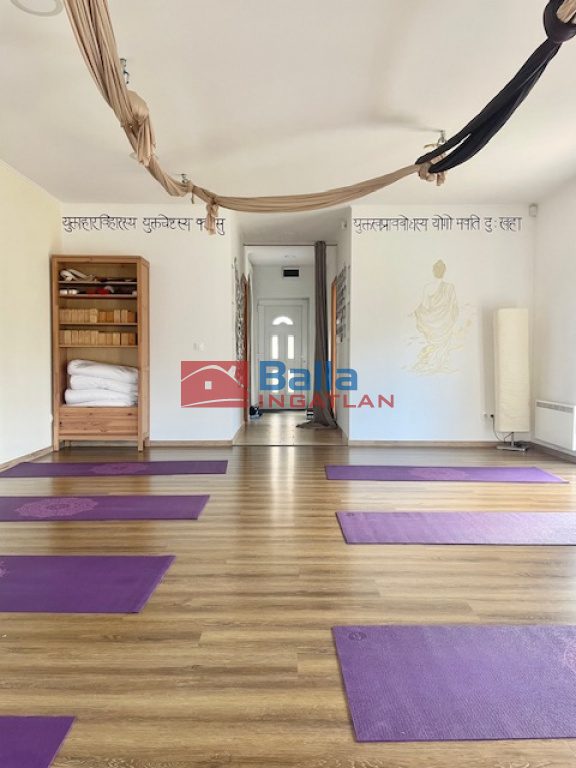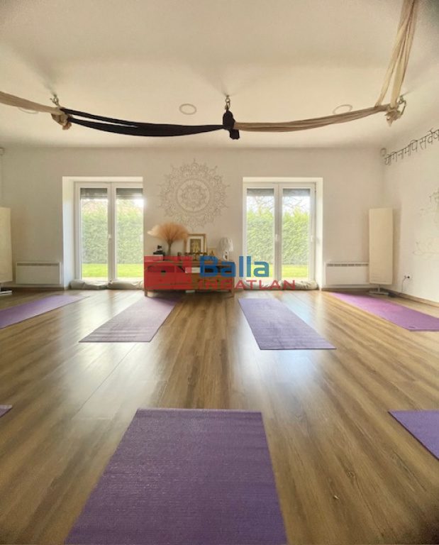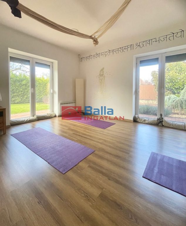 A telken található egy különálló kb.68m2-es épület,pazar méretű ablakokkal, jelenleg exkluzív közösségi/jógatér funkcióval.