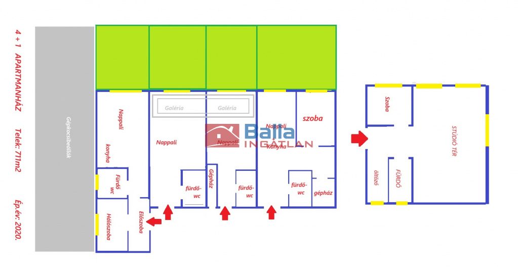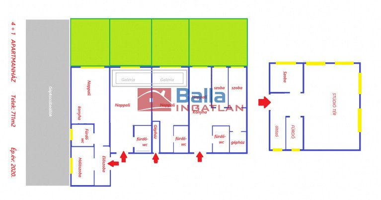 Egy telken 4 + 1= 5* önálló apartman, stabil, hosszútávú bérlőkkel.