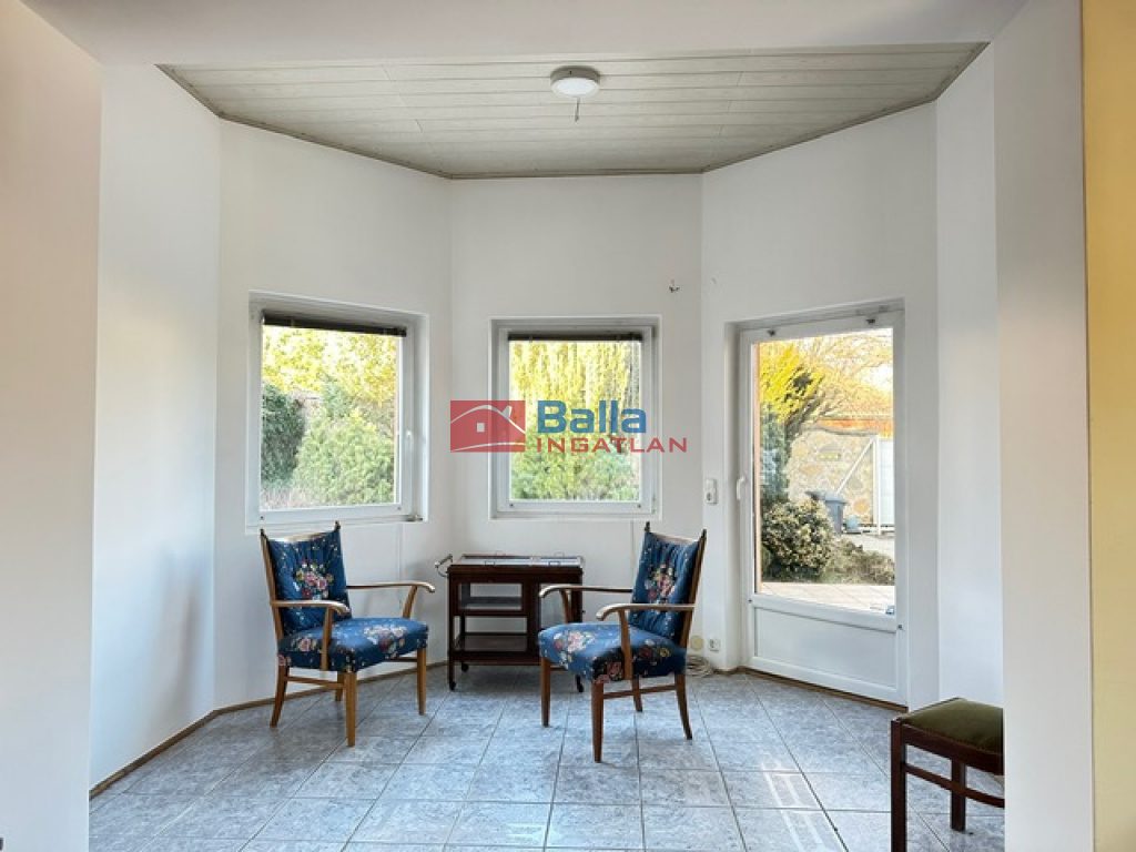 A ház nagyon jó állapotú, mind műszakilag, és esztétikai szempontból. A földszinten tágas hall , (mely télikertként is használható,) étkező-konyha, két hálószoba , fürdőszoba és nagy méretű nappali található.