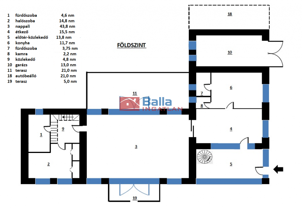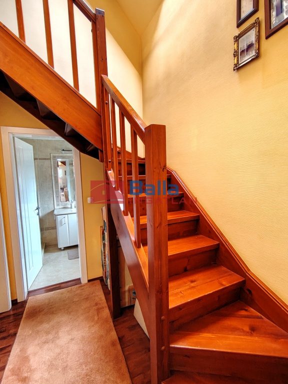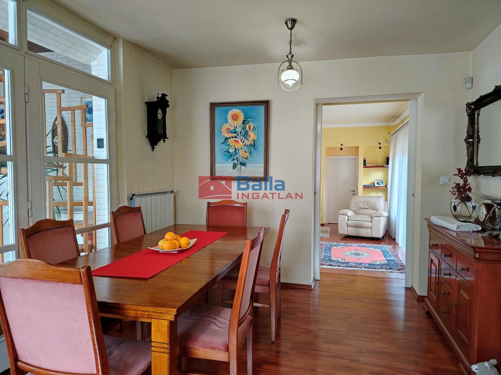 Egyéb tulajdonságok: tehermentes, kandalló, kamra, erkély (6 m²), terasz (21 m²), pince, garázs