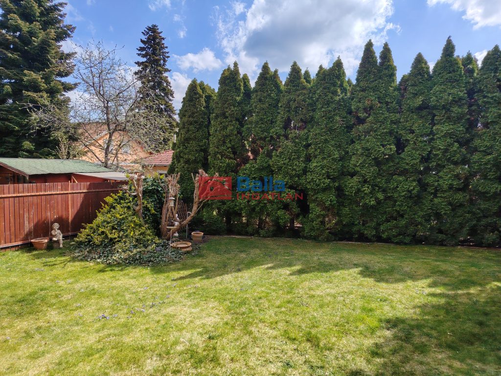 A kert igazi plusz: nyugodt, intim hangulatú, saját ásott kúttal és öntözőrendszerrel, valamint egy praktikus, 8 nm-es fa tárolóval.