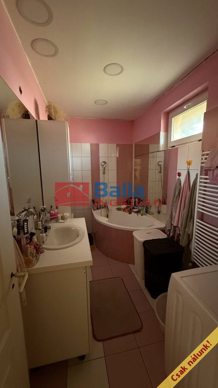 Sarokkádas fürdőszoba, külön WC, háztartási helyiség