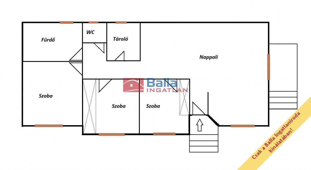 A ház nappali + 3 szobás, tágas terekkel és kertkapcsolattal rendelkezik.