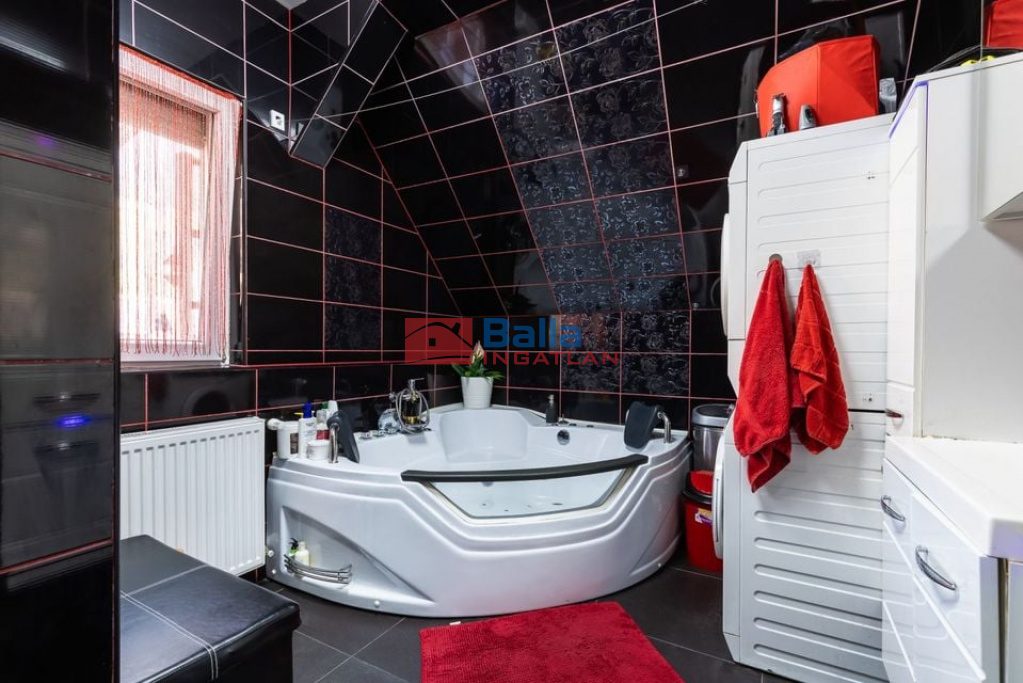 A földszinten egy nyári konyha zuhanyzóval és WC-vel is kialakításra került, amely kiválóan használható közösségi térként, kerti partik helyszíneként, vagy akár külön bérbe is adható. Ez a helyiség egyben a kazánházként is szolgál, ahol a teljes gépészet elhelyezésre került.