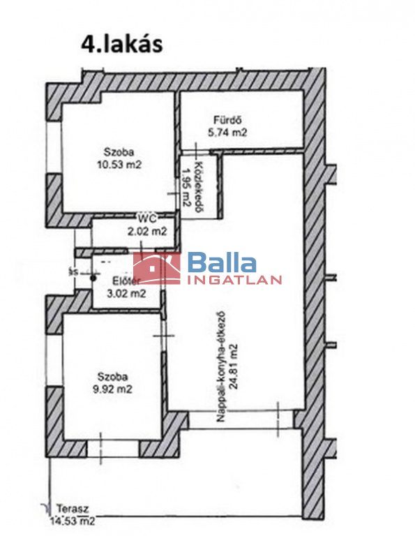 Egyéb tulajdonságok: tehermentes, lift, külön wc, terasz (15 m²), zárt autóbeálló