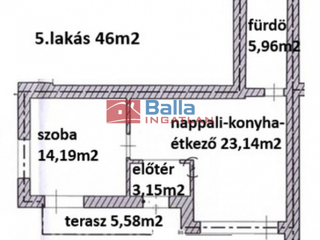 • Lakás alapterülete 46m2, kert 112m2, terasz 15m2