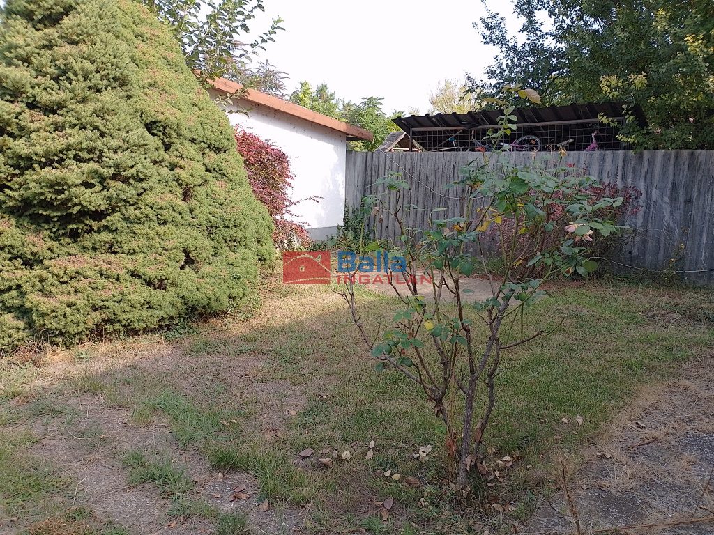 A kertben gyümölcsfák, az udvaron tároló, garázs található és egy kisebb száraz pincehelyiség - itt található a gáz kazán is.