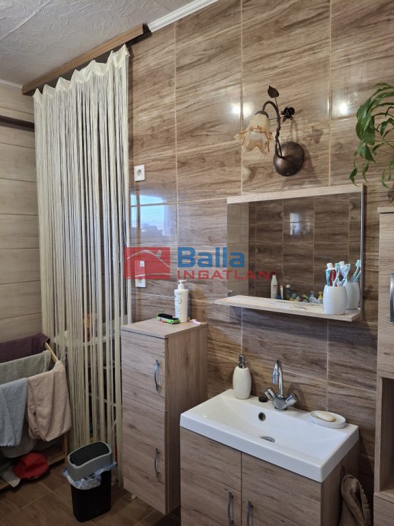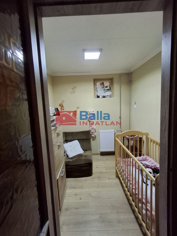 Jó állapotú fa nyílászárókkal, az előszoba és a szobák minőségi laminált padlóval, az összes többi helyiség járólappal burkolt.