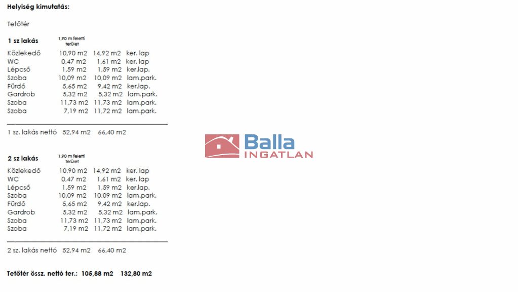 • Tetőtér Beépített