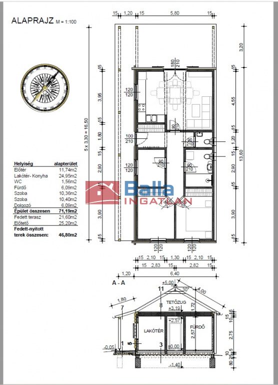 • 71 m² hasznos tér, 3 hálószoba, modern fürdő + 2 WC