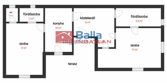 Egyéb tulajdonságok: terasz (6 m²), garázs, utcai parkolás