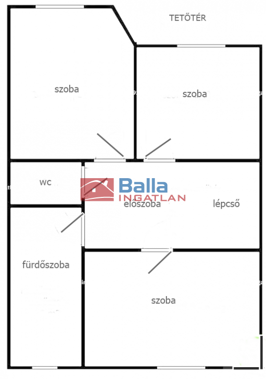 A tetőtérben 2+1 fél szoba, sarokkádas fürdő wc-vel és egy külön wc lett kialakítva.