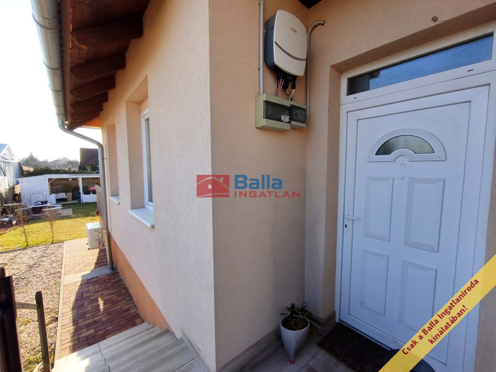 A ház műszaki tartalma valóban rezsibarát. A fűtésről és a melegvízről korszerű cirkó gázkazán gondoskodik, padlófűtéssel és radiátoros hőleadással kombinálva, így minden helyiségben kellemes hőérzet biztosított. A 2022-ben telepített napelem rendszernek köszönhetően az áramszámla szinte nullára csökkent. A 2025-ben felszerelt modern Gree hűtő-fűtő klíma egész évben megfelelő komfortérzetet biztosít.