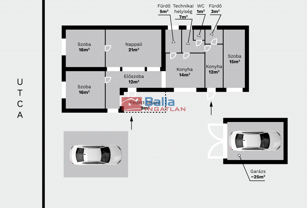 Egyéb tulajdonságok: tehermentes, lift, külön wc, terasz (9 m²), pince, garázs