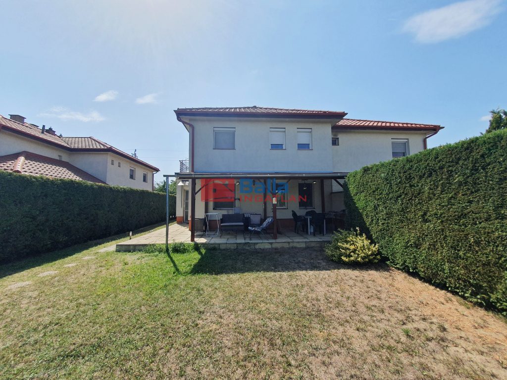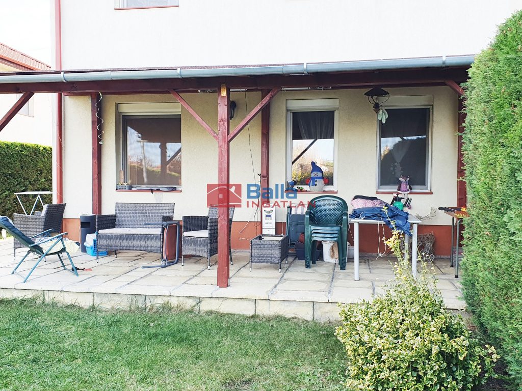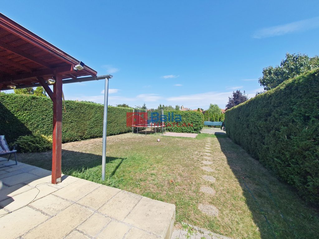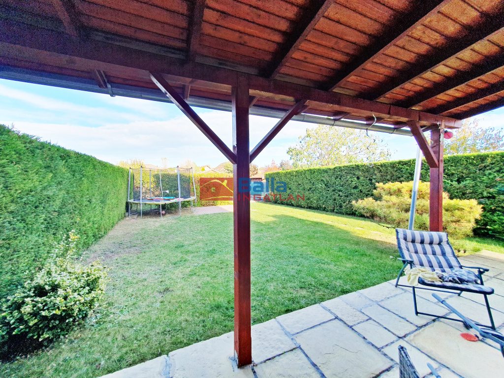 A nappaliból nyílik a 25 nm-es fedett MODERN TERASZ benne fényablak és az örökzöldekkel ellátott IGÉNYES saját füves KERT, benne modern 20 nm-es fa KERTI TÁROLÓ, mely műhelynek is kiváló, mögötte grillezőhely. A kapu mellett is egy zárt tároló. A ház előtt 2 saját, járólappal burkolt AUTÓBEÁLLÓ, a kovácsoltvas 2 szárnyú, TÁVMŰKÖDTETÉSŰ KAPUN belül további 2 AUTÓ BEÁLLÁSI LEHETŐSÉG. Kedves szomszédok.