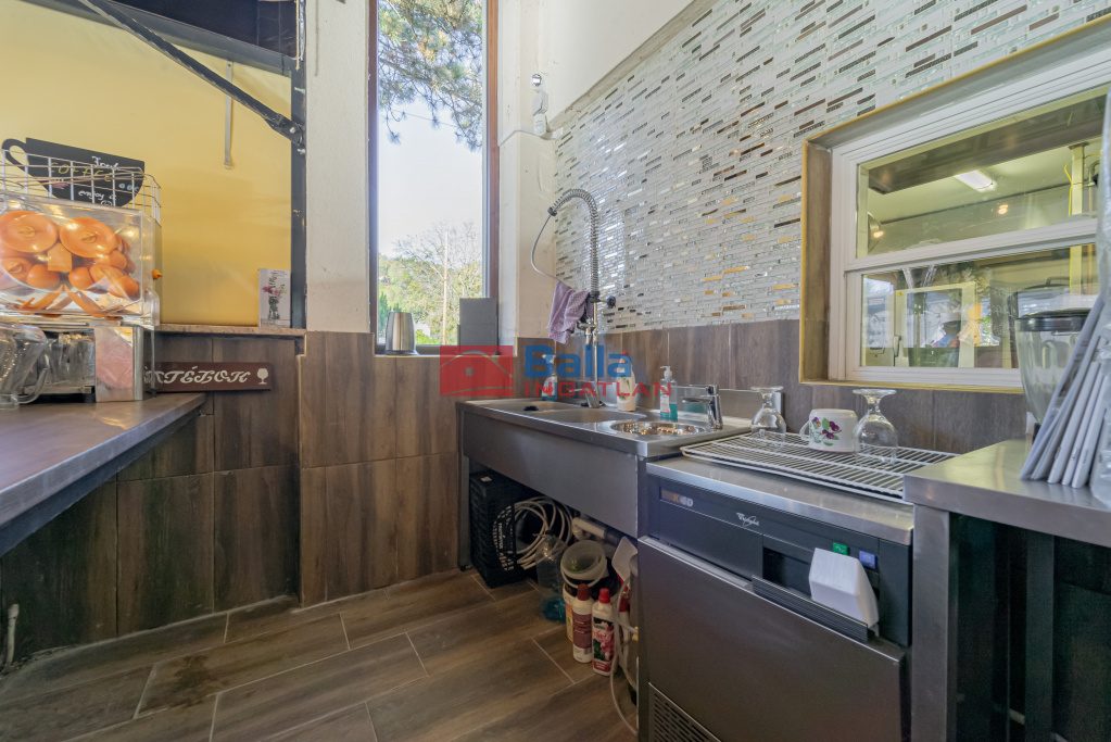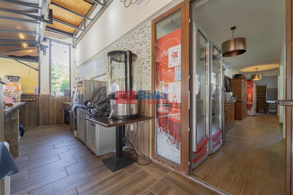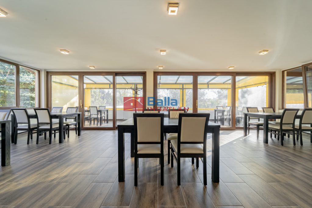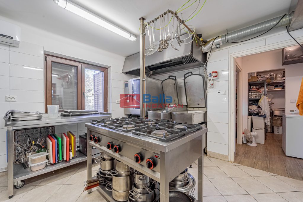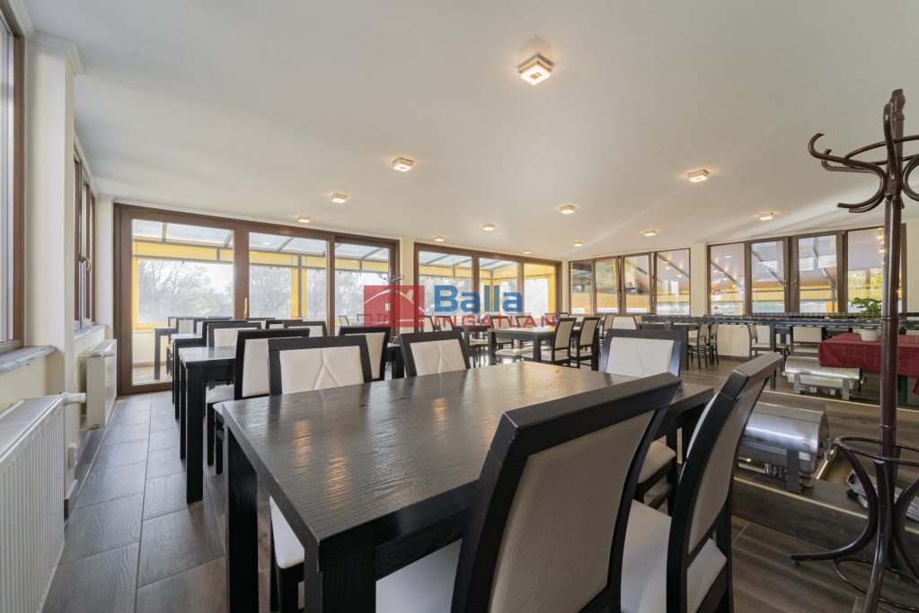 Étteremhez középső szint, tartozik 157,8m2 kiszolgálótér teljes berendezés (asztalok, székek, bárpult). Konyha, raktár, előtér, gépészeti tér, dolgozói és vendég mellékhelységek 91,67m2 területen. A konyhai gépek a legmodernebben (RATIONAL sütő-főző, hűtött pult, hűtő szekrények stb.), de nem tartoznak az alap vételárba az étterem és az apartmanok mobiliáival együtt, külön vételi megállapodás részét képezhetik.