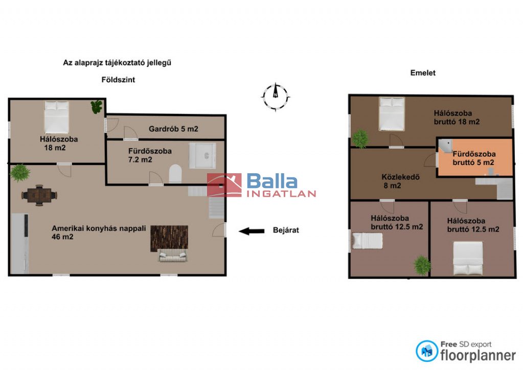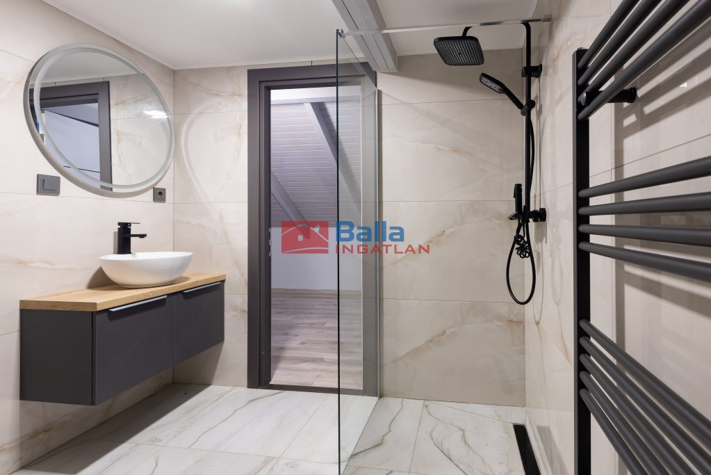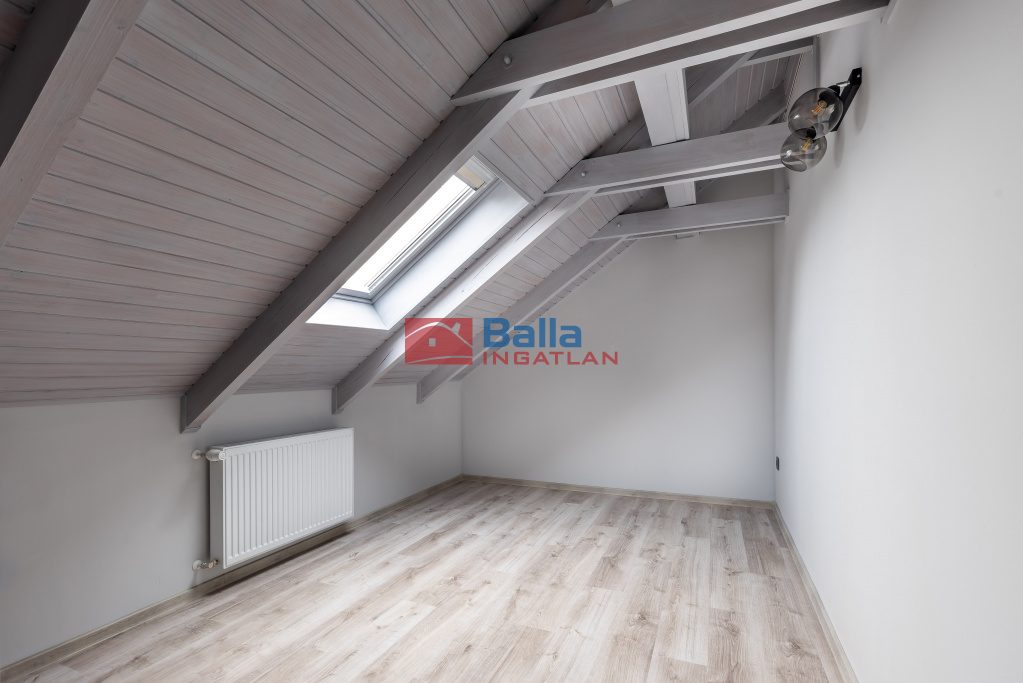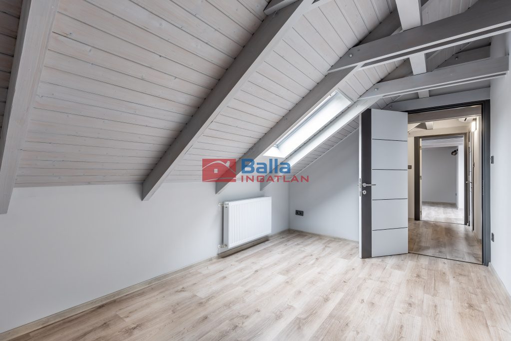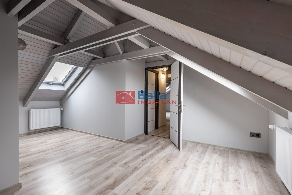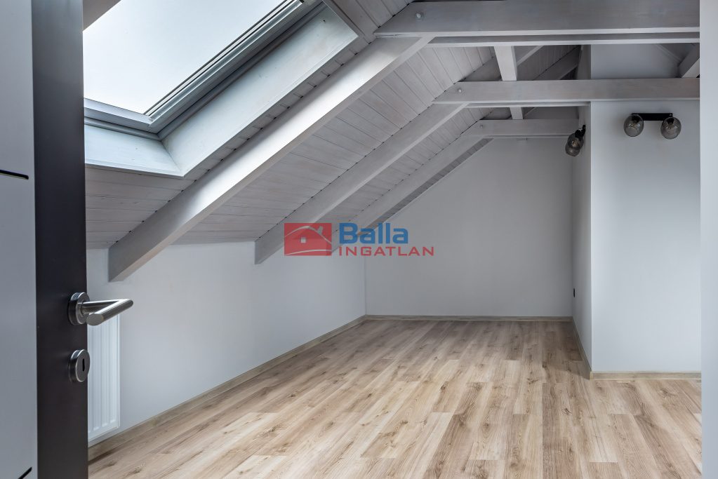 A tetőtér jól használható belmagassággal rendelkezik, itt 3 külön nyíló szoba kapott helyet, így ideális hálószobáknak, dolgozószobának vagy akár gyerekszobáknak is. A tetőtéri helyiségeket tetősík ablakok világítják meg, a hangulat kifejezetten otthonos. A szinthez egy modern, walk-in zuhanyzós fürdőszoba is tartozik.